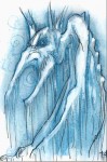 Primus gives you a device for rescuing his mistress and instructs you how to use it, then lowers you into a narrow crevasse and you emerge into a huge icy cavern. You hear creatures grunting down a passage to the south so decide to head north, where the rocky tunnel soon turns into a paved corridor. You enter a room full of bookshelves on which sits a small, winged blue creature grumpily reading books. On seeing you it starts asking if you can make it better – it claims to be a water mephit who’s been turned into an ice mephit, and promises to show you how to free Kavon if you ‘cure’ it. Eventually you decide to ignore it and leave the room full of ruined books, but the mephit continues to follow you.