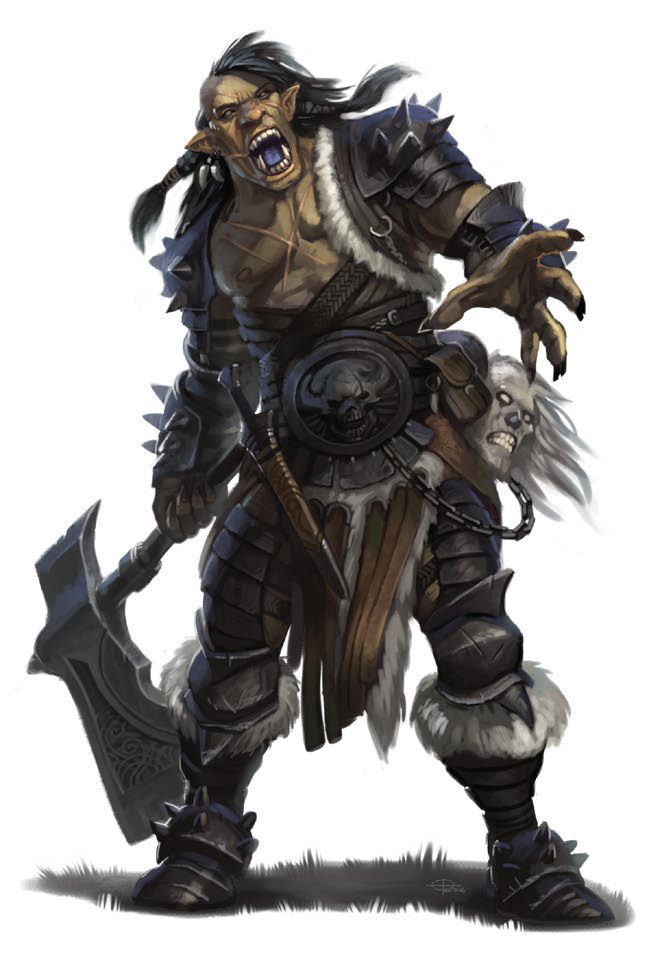 Across a corridor heading north is a door. Shade listens at this and hears grunting and breathing coming from the other side, so once everyone is prepared Fallan throws the door open. Behind it is some sort of barracks-room, on the opposite side of which is another door that has been barricaded, but you don’t have time to investigate this as the occupants of the barracks – five bugbears – would like to talk to you about where the fuck you think you’re going.